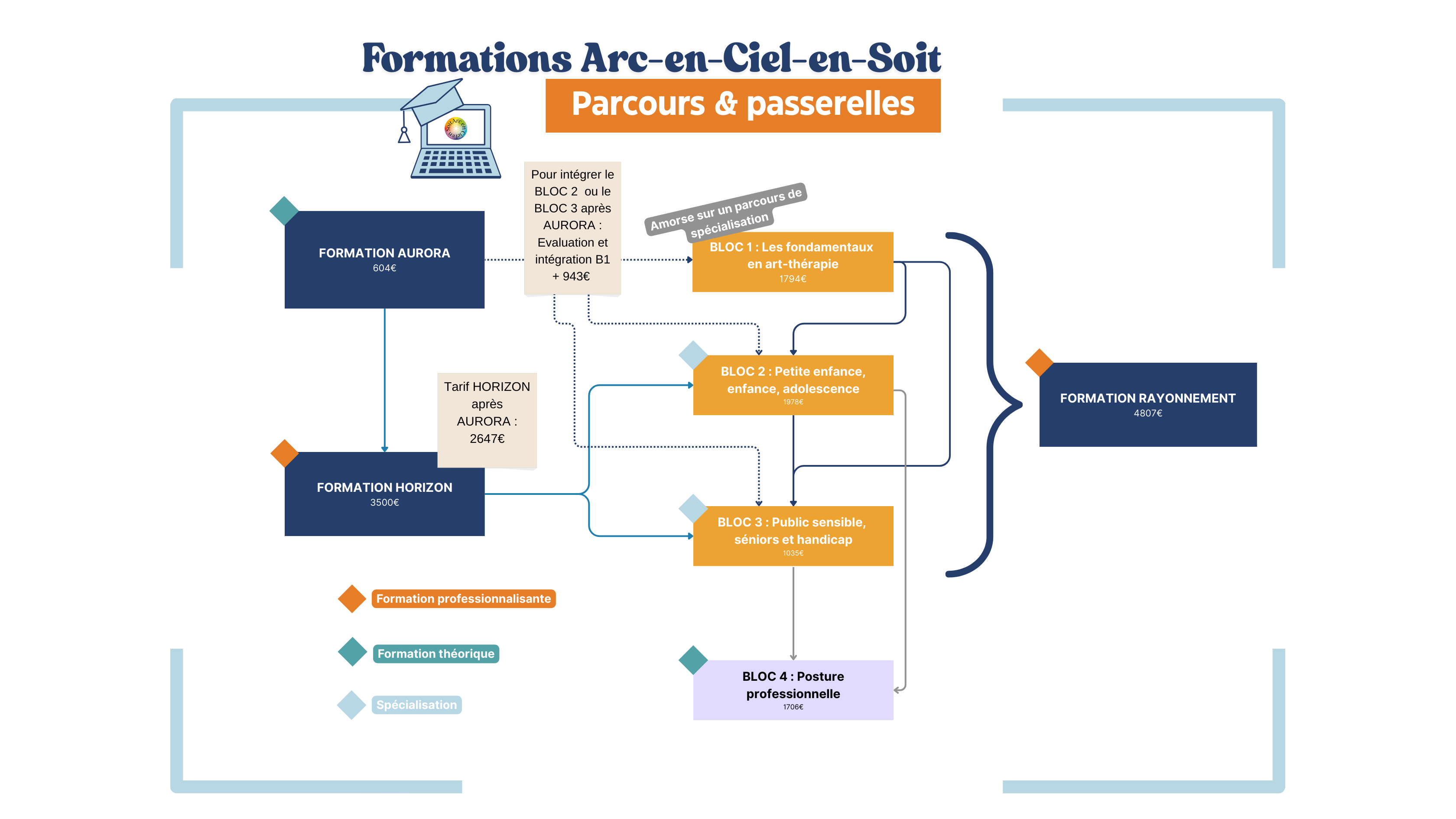 Notre association et centre de formation vous proposent des parcours pré-formation ou post-formation pour une expérience des plus complètes ! Que ce soit des stages en présentiel, des ateliers de médiation créative ou encore un accompagnement professionnel, nous adaptons votre parcours selon votre niveau et votre projet.